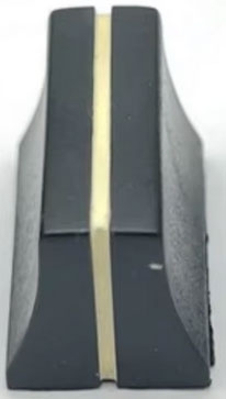 Black plastic fader knob for 4mm slide potentiometers, slider controlsLength 19 mmBottom width 12 mmTop width 7 mmInner hole/slot 4 mm